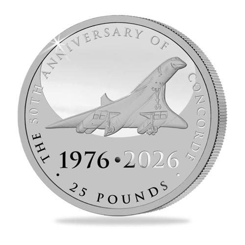 Introducing the NEW 50th Anniversary of Concorde Fine Silver Proof 5oz Coin, expertly struck in Five Full Ounces of 999/1000 Fine Silver to the highest Proof finish to celebrate exactly five decades since Concorde’s maiden passenger flights on the 21st January 1976. Officially approved by Buckingham Palace, this sought-after coin features a ONE-YEAR-ONLY reverse by leading engraver Matt Bonaccorsi depicting the iconic supersonic jet soaring overhead. The NEW coin’s 65.00mm diameter showcases the design in impressive detail, with the unique droop nose and delta wings that allowed Concorde to fly at record-breaking speeds perfectly captured. Meanwhile, on the obverse is an official effigy of Charles III, who is uncrowned and facing left, by Jody Clark. JUST 100 of these NEW 5oz coins have been struck worldwide to commemorate this milestone anniversary, and with only a small allocation available at The Jubilee Mint, a prompt response is essential. Arrives housed within a deluxe Presentation Case along with a Certificate of Authenticity, confirming its strict edition limit.